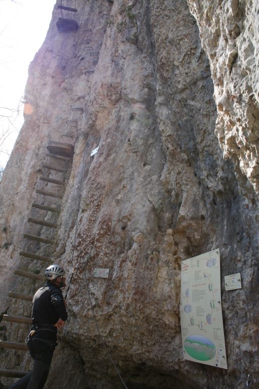 La via est peu difficile et très ludique et tu surplombes l'Orne qui coule en bas au fond! Elle est équipée juste ce qu'il faut avec un peu de contact avec les rochers.