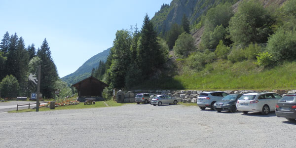 Prendre la D22. Depuis le centre ville de la Chapelle d'Abondance, compte 1,5 km pile poil depuis la mignonne petite église. A la sortie de Chapelle d'Abondance tu as un grand panneau sur la droite, avec une figurine qui fait de l'escalade. Le parking est là.